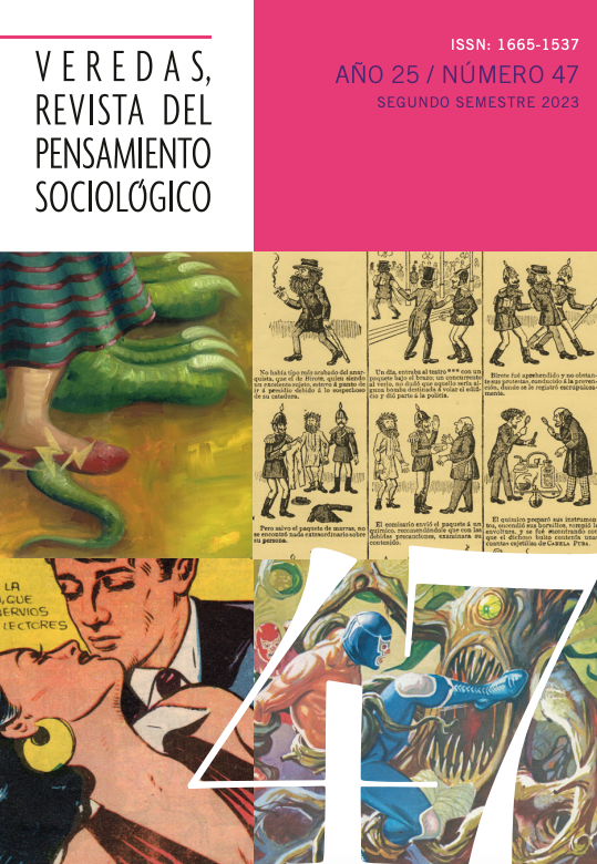 Núm. 47 (24)En Veredas somos conscientes del papel que como revista científica tenemos, no sólo frente a la comunidad académica, también frente a la sociedad en general, por esta razón hemos buscado ampliar los espacios de nuestra revista, así como los contenidos. La decisión de acompañar cada número con un ensayo visual busca no sólo vestir a la revista, paralelamente busca fortalecer la identidad general de Veredas al tiempo que trata de generar una identidad para cada número.